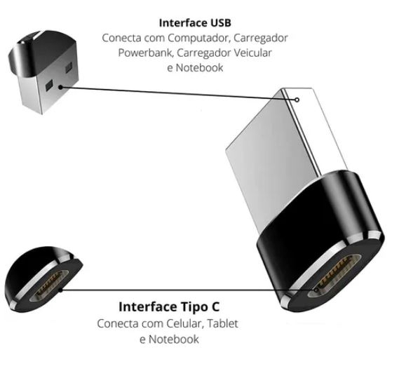 > Adaptador Conversor USB Type C Fêmea para USB Macho
